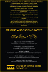 First impressions are a thick, full crema, part of a smooth and syrupy body finishing with a climax of complex flavor on the palate. Features base notes of caramel chocolate, hazelnut, citrus, cherrywood and dark plum. A natural, honey sweetness follows at the bottom of the cup.